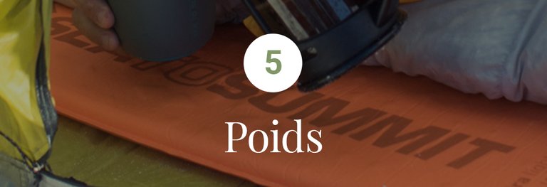 CONSEIL : les marques commeVaude et Therm-A-Rest ont développé des matelas pneumatiques poids plume qui offrent une bonne isolation et sont assez robustes. Idéal pour les randonneurs de l’extrême qui souhaitent du confort sans ajouter de poids.