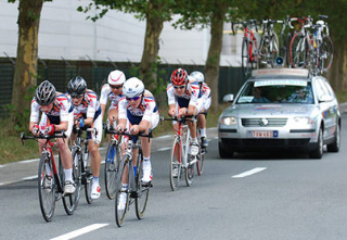 Les cyclotouristes peuvent être escortéspar un maximum de deux voitures. La première roule 30 mètres devant le groupe, la seconde 30 mètres derrière. S’il n’y en a qu’une seule, elle ferme la marche : il s’agit de la voiture suiveuse.