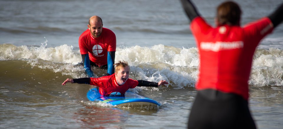Au large de la côte de Camperduin, Quinten, 9 ans, se redresse sur sa planche de surf. Une forte vague l'emporte et le fait vaciller un instant. Mais Quinten garde son équilibre et reste debout. Son regard brille et ses yeux se remplissent de fierté. Il l'a fait ! Dans l'eau, ses accompagnants l'encouragent tandis que sur la plage, sa mère Jantien et son père Steven l'acclament.