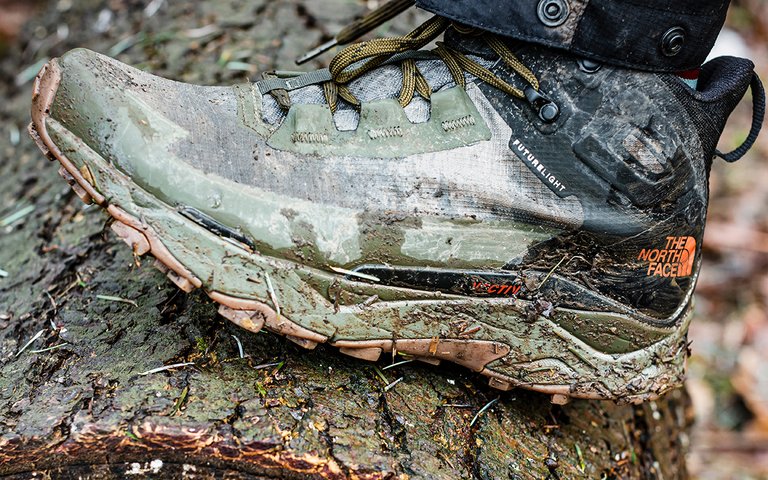 À quoi ressemblent ces modèles ultralégers ? « Pour une chaussure de randonnée, la VECTIV™ Exploris Mid Futurelight affiche un très beau look, avec des couleurs sympas qui changent de celles que l’on associe habituellement aux chaussures de randonnée. Après quelques heures, on ne pouvait toutefois plus autant apprécier ces couleurs tendance… Les chaussures étaient complètement recouvertes de boue ! (rires)