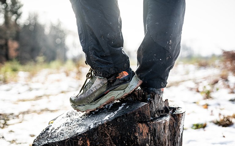 Selon Arne, le design des chaussures vous invite donc à les enfiler et à prendre la route sans plus tarder. « Pour une chaussure de randonnée de type Mid, elles sont extrêmement légères et s’ajustent également bien dès le premier essayage. » C’est l’avantage des chaussures synthétiques : elles sèchent plus vite et nécessitent beaucoup moins de rodage que les modèles classiques en cuir. « Par précaution, je les ai d’abord portées pour une randonnée d’une trentaine de kilomètres. À la moitié du deuxième jour, je n’avais plus mal nulle part, même si je dois admettre que je n’ai pas vraiment de problèmes aux pieds. »